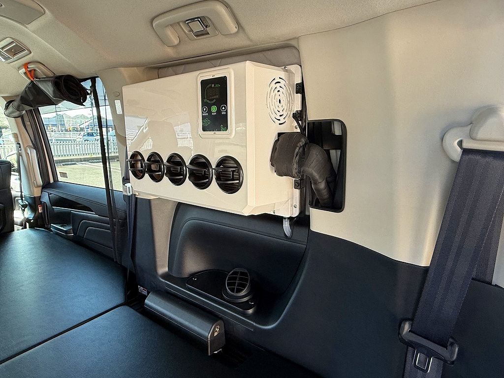 リチウムサブバッテリー2個、防虫ネット、パワーバックドアスイッチ、パーソナルテーブル、運転席用フットレストにNOCO G10外部充電システム等々。
