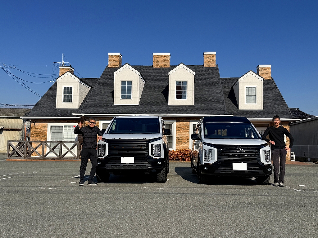 同僚の方もデリカD:5をリフトアップしたり、カスタムを楽しまれていてご一緒に会社の前で一緒に撮影した写真が以下の写真です。