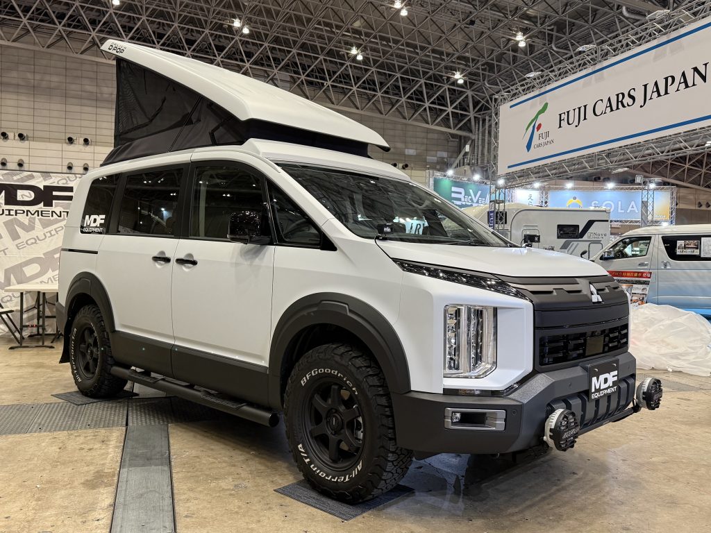 今回MDF EQUIPMENTは1月9日に発売されて間もない新型デリカD:5にポップアップルーフを取り付けての展示となります。
