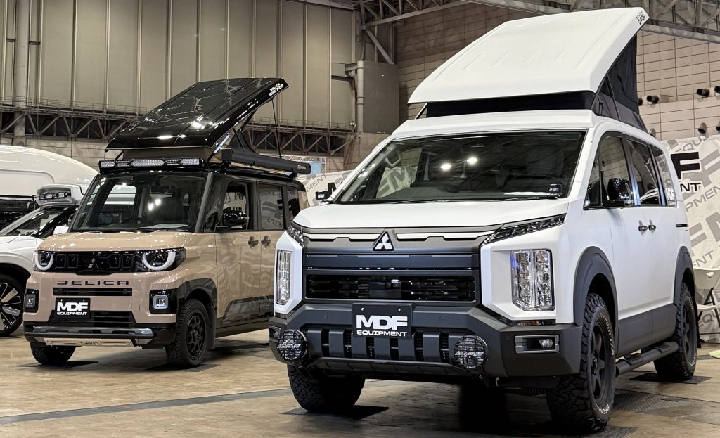 出展車両は新型デリカD:POPとオートサロンで話題になったデリカミニのポップアップ仕様、M:POPです。