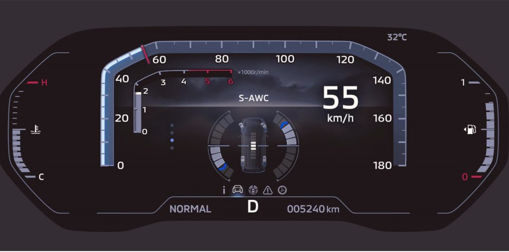 それに伴いメーターも液晶カラーメーターとなり、S-AWCの効き具合や先行車発信のお知らせ機能などメーターも充実した内容となっています。