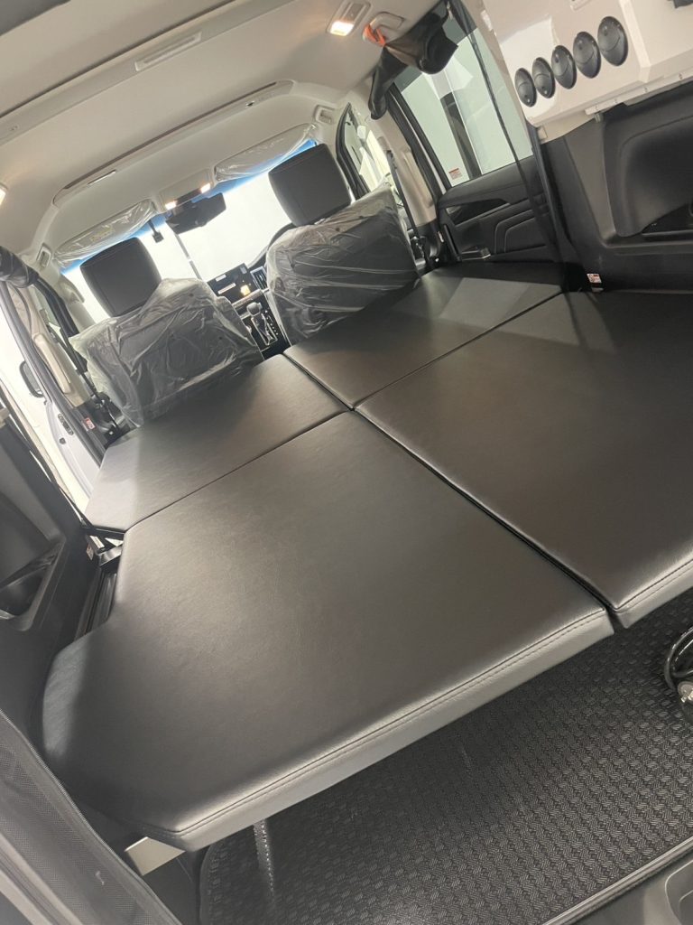 サードシートは取り外しMDFベットキットで2人で広々寝れる使用にさせていただきました。