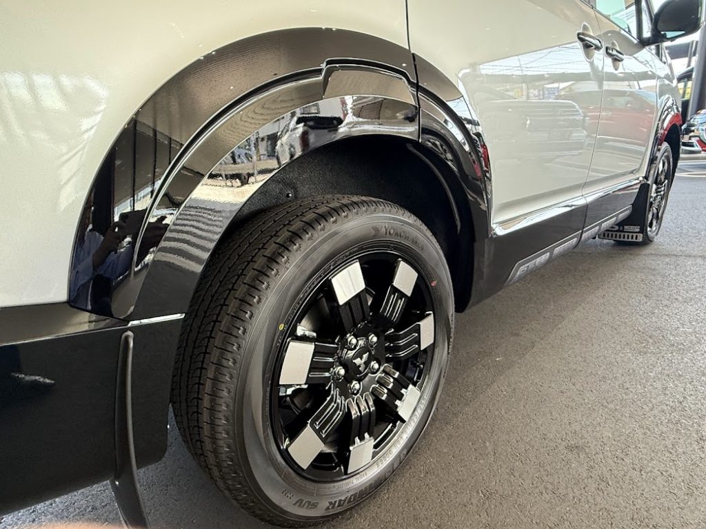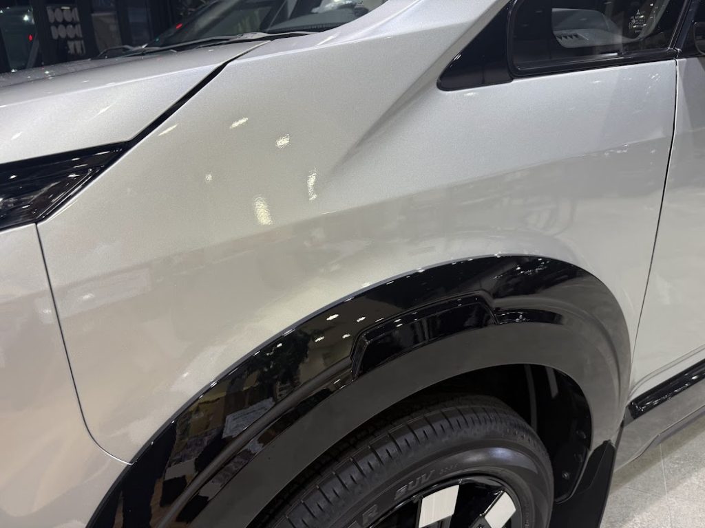 それと今回のデリカD:5はフロントグリルが2種類あり、ボディ色によりグリルがグレーのタイプとブラックのタイプがあります。展示しているシルバーとブラックのツートンは実はグリル等がグレーなのですが、ディーラーオプションを装着してブラックに変更している箇所があります。なので、展示車をご覧いただいてからシルバーのツートンはグリルがブラックなんだ、、、と思うのは間違いです。ブラックグリルにしたい場合はディーラーオプションを装着するか、弊社得意の塗装をするしかありません。