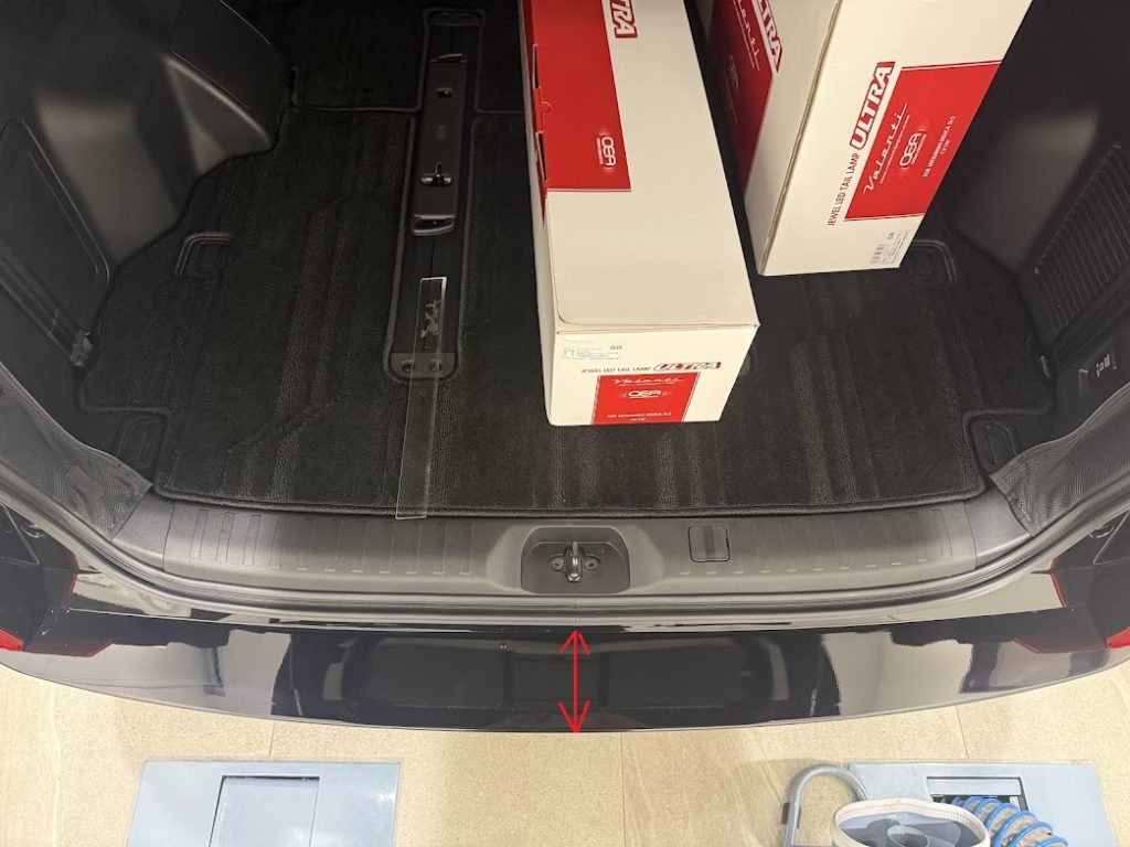 リヤのバンパー部分です。センサーが埋め込まれている新型は出っ張りがあって、見慣れないとちょっと変な形に見えますね。