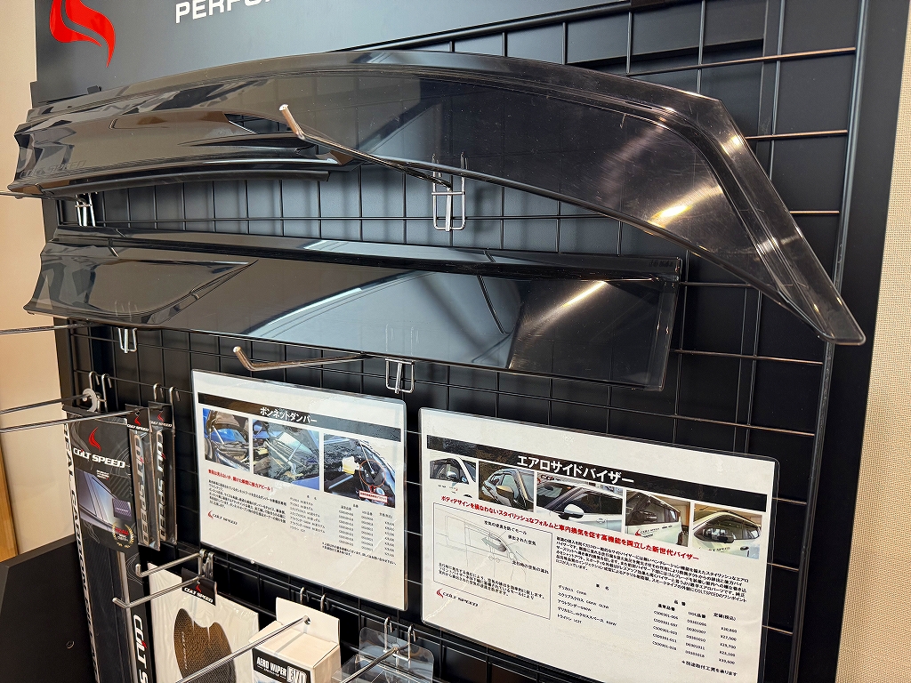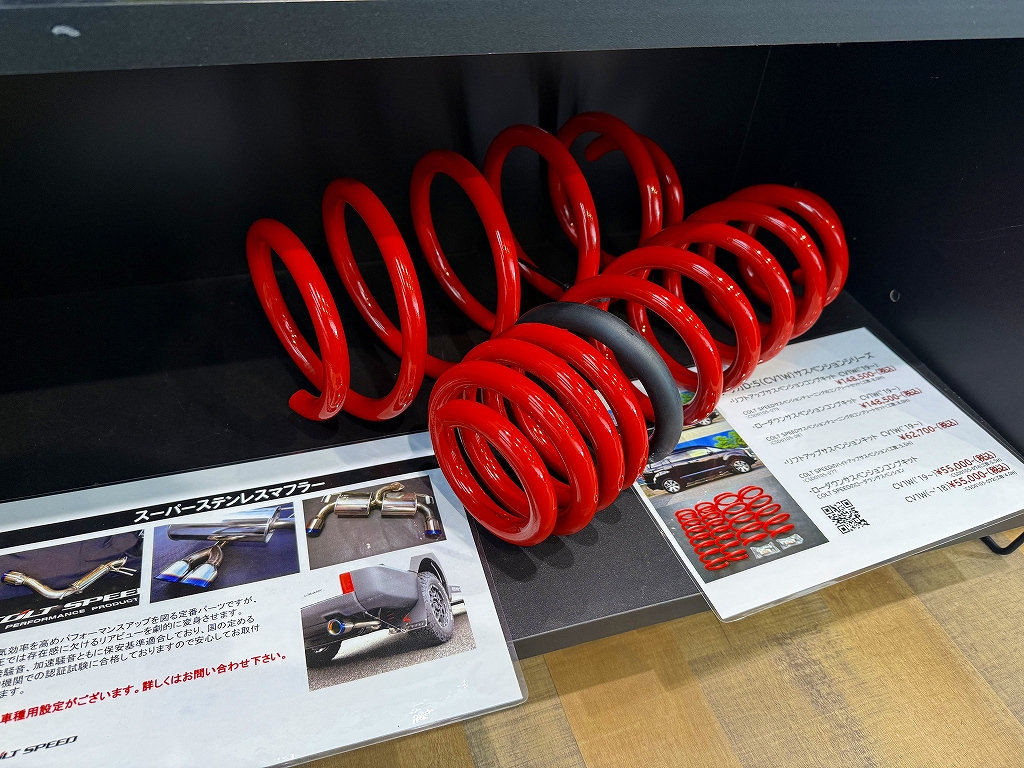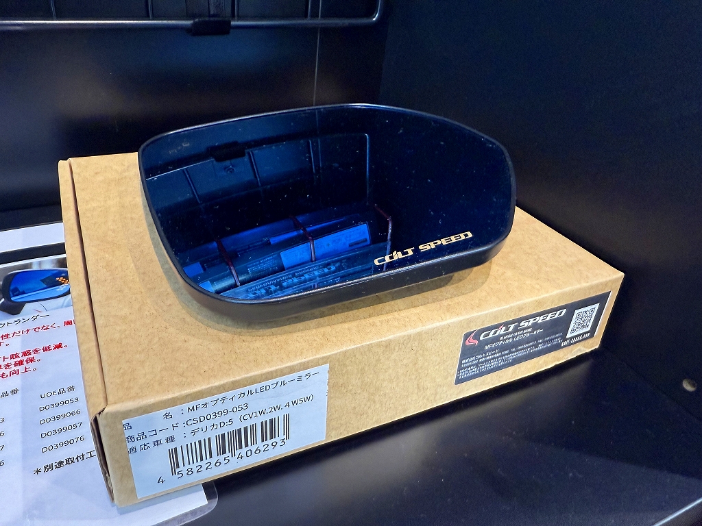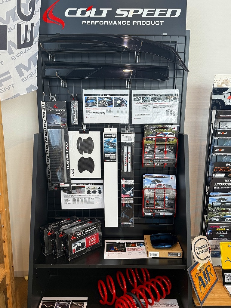 まだまだほんの一部の製品なので、現在は仮置きの状態ですが、もうひとつラックを追加していただく予定となっておりますので、デリカD:5はもちろん、今後はトライトンやデリカミニ等のコルトスピードさんの製品を充実展示していきたいと思います。