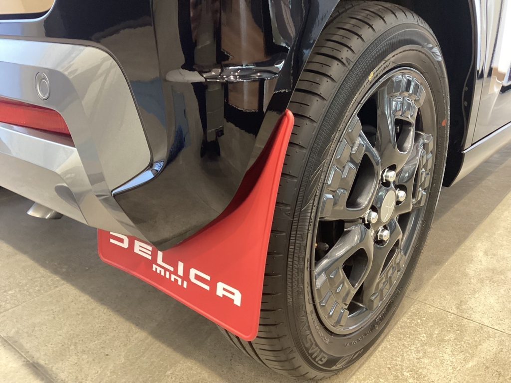 ブラックエンブレムセットでDELICAの文字を強調し赤のマッドフラップでカッコよく仕上がりました。