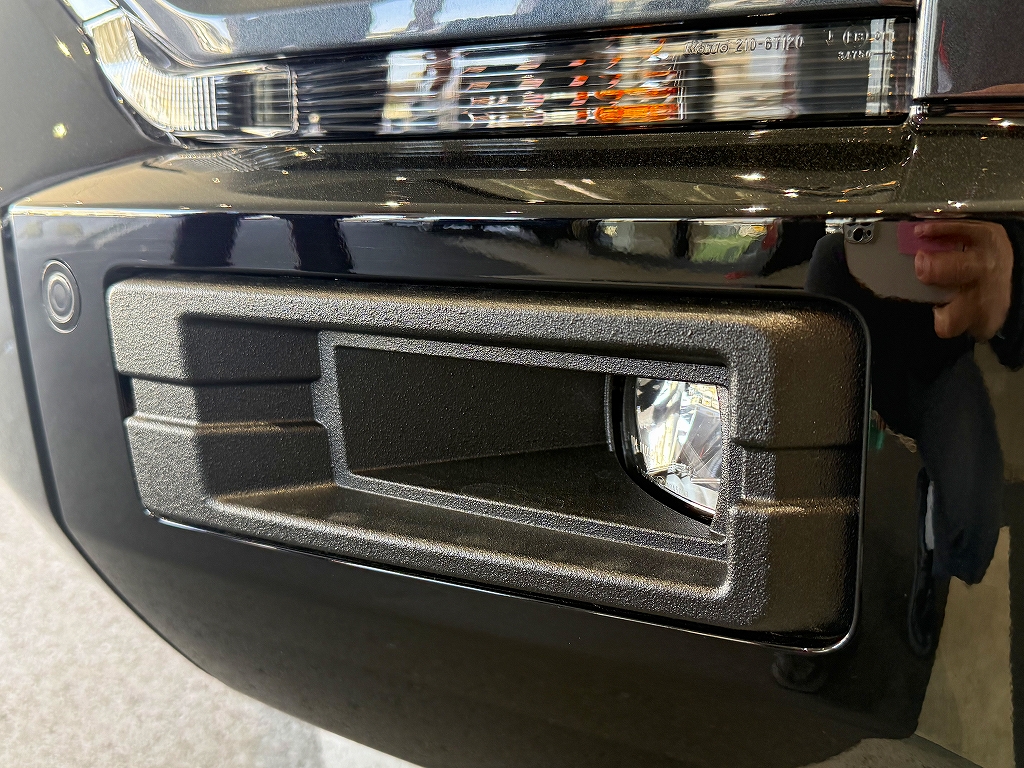フォグランプガーニッシュにもラプターライナーの塗装を施し、ワンポイント入れていただきました。